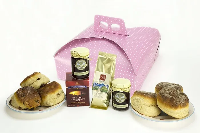 Indulge in the finer things in life with our luxurious Afternoon Tea for Two gift set. Each large assortment contains everything you need for a special mid-day treat including medium roast Fresh Ground coffee, English Breakfast Tea, a jar of both Bradford’s own Strawberry and Raspberry Jam, as well as 3 Devon Scones and 3 Sultana Scones – all freshly baked-to-order.