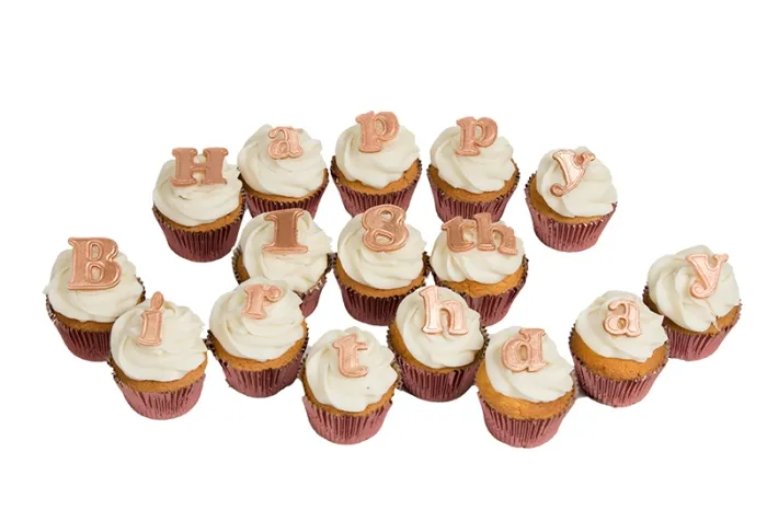 Send a birthday message with a delivery of our special Classic Style Happy Birthday Cupcakes. Made from light, feathery Madeira sponge topped with swirled vanilla frosting, each cake is decorated with edible letters directly on top of the frosting for a delicious Birthday treat. Choose your preferred Colour Theme from Blues, Pinks, Reds, Gold, Silver or Rose Gold