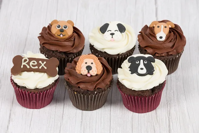 Each box contains a variety of doggy designs and you can personalise the box by including your dogs name or a message on the 'bone' decoration. Whether you want to send these treats for a Birthday, a Get Well Soon or as a Thank You for looking after the dog, we are pawsitive these cakes will be enjoyed.