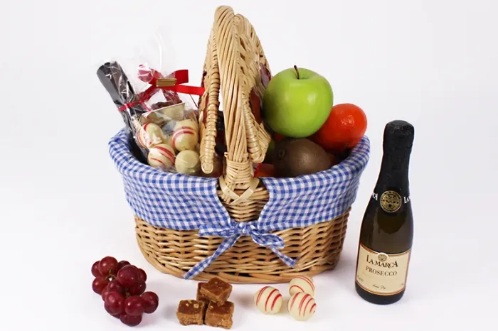 With a selection of fresh fruit, a bottle of Prosecco, Belgian White Chocolate Truffles and Crumbly Fudge, our Fruit and Fizz Gift Basket makes a attractive and unusual gift which is sure to be appreciated.