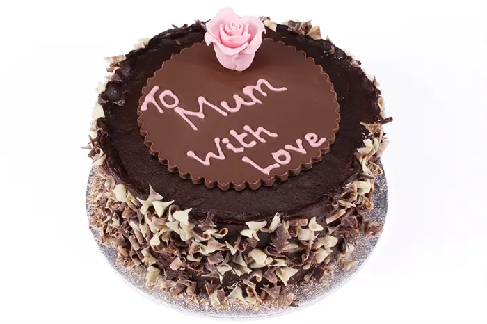 Give your mum the gift of cake heaven. Our Chocolate Fudge Cake is made from rich chocolate sponge with lashings of thick chocolate frosting. Each cake is then hand finished with a chunky chocolate plaque with your own edible message. Serving between 8 and 12 people this makes a great mothers day cake.